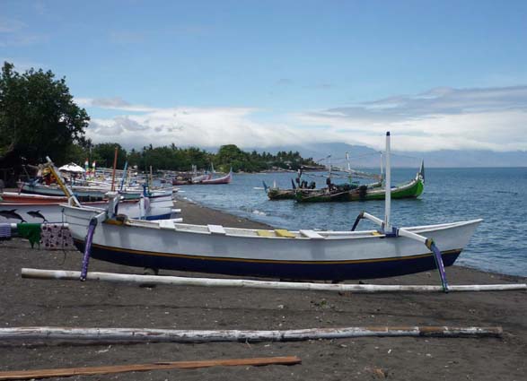 - traditionelles Fischen auf einem balinesischen Fischerboot